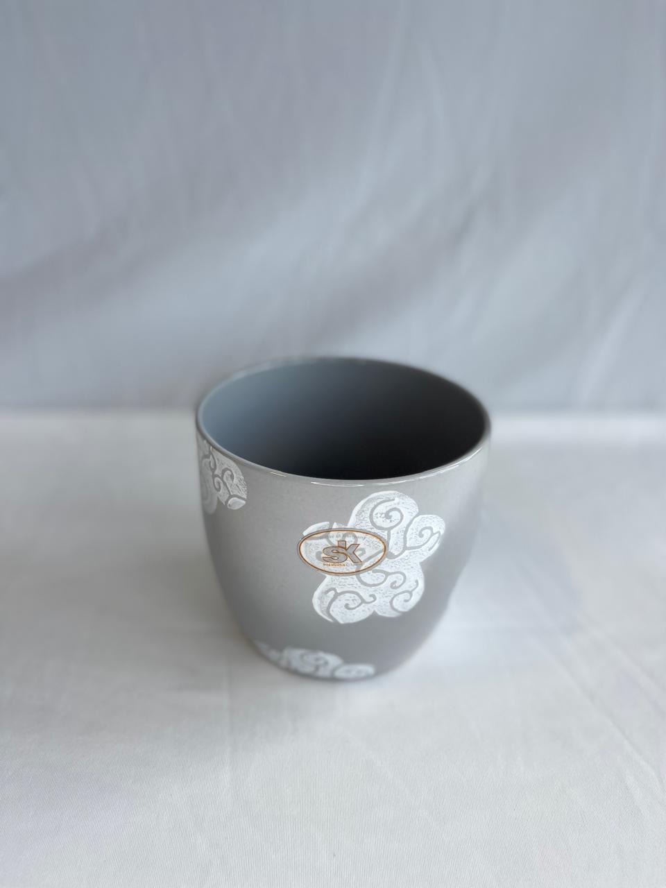 / Ceramic grey white flowers P13